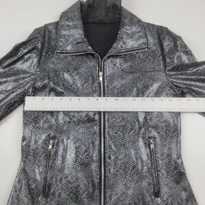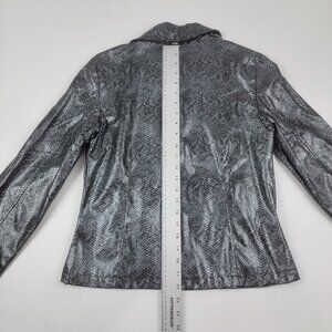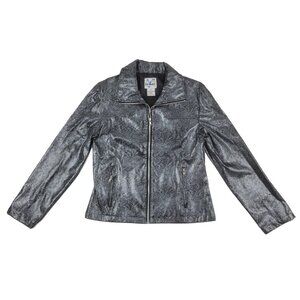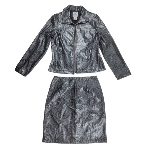 Vintage Y2K Club Kids Metallic Snake Print Moto Jacket & Skirt Set Silver Black