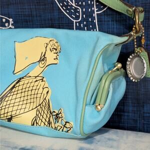 Vintage Y2K Coach Canvas Bonnie Cashin Printed Shoulder. small green and blue.