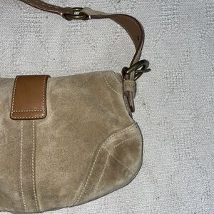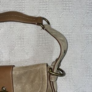 Vintage Y2K Coach Hobo Soho Buckle Flap Shoulder Bag Tan Brown Suede Leather