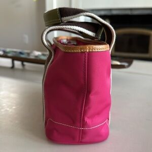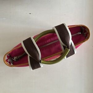 Vintage Y2K Coach Hot Pink Nylon Mini Hampton Tote w/ Camel & Lime Leather Trim