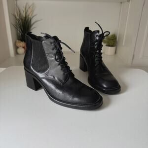Vintage Y2K Cole Haan Black Leather Lace Up Booties Size 7-7.5