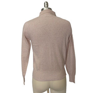 Vintage Y2K cotton and wool blend shirred front collared cardigan in light heathered lavender. Light wear to front of a few buttons. In gently preowned condition, no flaws noted.
