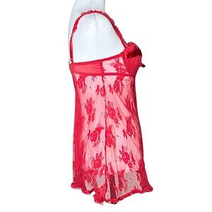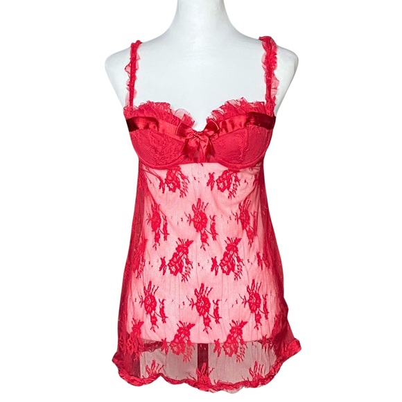 Vintage Y2K Coquette Red Sheer Lace Christmas Slip Dress. S/M. Babydoll Lingerie