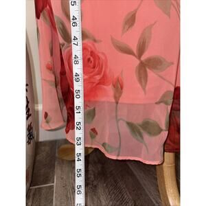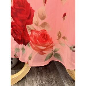 Vintage Y2K Coral Red Rose Holiday Party Dress Chiffon Maxi Slip Dress 90s