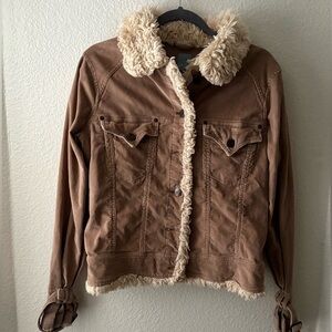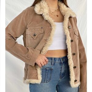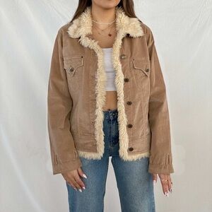 Vintage Y2K Corduroy Jacket Junior Size Small Button Up Frayed Buckle Coat Tan