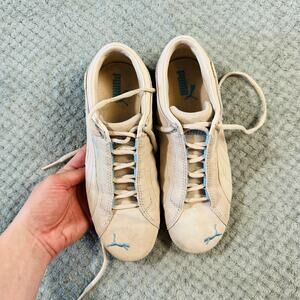 Vintage Y2K Cream/Turquoise PUMA Low Track Sneakers Trainers Laceup W7.5