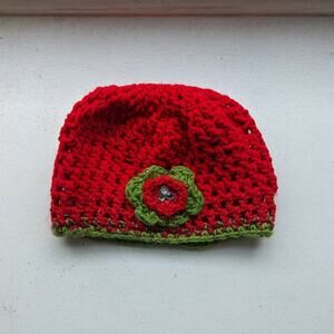 Vintage Y2K Crochet Festival Hat Kawaii Red Chunky Knit Beanie Cute Floral Funky
