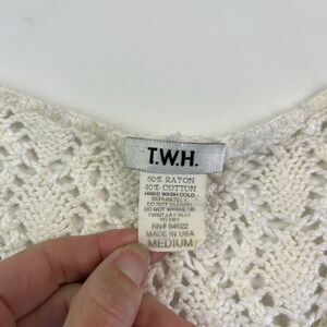 * Vintage Y2K Crochet Sweater M Cream Knit Cottagecore Romantic Coquette Soft Girl