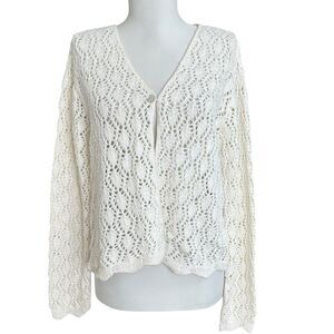 Vintage Y2K Crochet Sweater M Cream Knit Cottagecore Romantic Coquette Soft Girl