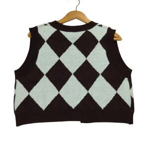 Vintage Y2K Cropped Sweater Vest Size M L Diamond Knit Mint Green Brown 2000s