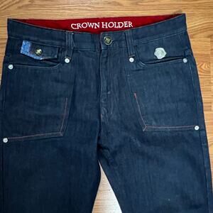 Vintage Y2K Crown Holder Jeans Authentic Embroidered 34 Men's