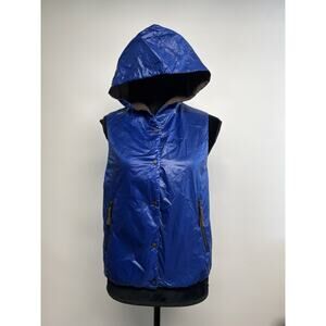 Vintage Y2K Cyber Punk Small Blue Shiny Vest Reversible Button Up Funky Hooded