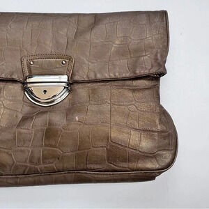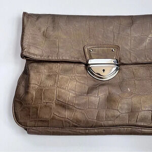 Vintage Y2K Cynthia Rowley Embossed Bronze Leather Fold Over Buckle Clutch