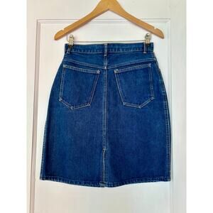 Yeeeeehaw! This vintage denim skirt is the cutest. It has pockets galore, is 100% cotton, and a front slit. Labeled size 9 but fits like a small / medium (see measurements). In excellent condition!