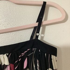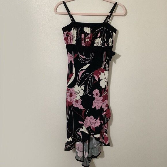 Trixxi Brand Girly Aesthetic Whimsical Black Pink and White Floral Tea Strappy Bow Underbust Babydoll High Low Ruffle Dress