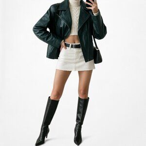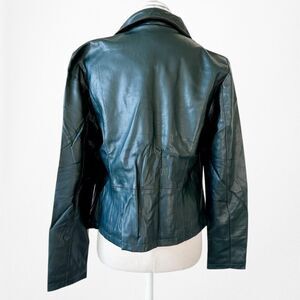 Vintage Y2K Dark Green Motorcycle Faux Leather Jacket Size 6/M