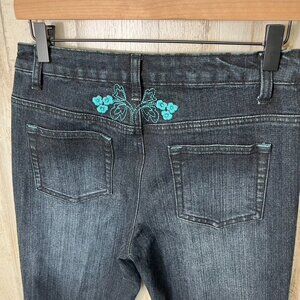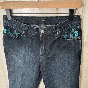 Vintage Y2K Dark Wash Denim Blue Floral Embroidered Capri Womens SIze 30