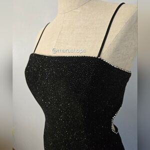 TAG: vintage Dave & johnny slinky stretchy black strappy backless glitter rhinestone accent y2k Ombre 00's maxi Dress wedding guest formal prom party evening gown black tie date night Valentine's holiday new year's anniversary celebration