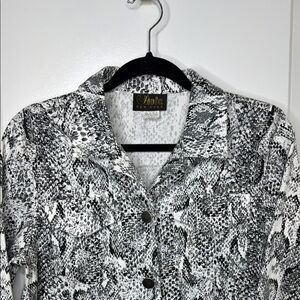 Vintage Y2K David Paul NY M Black White Snakeskin Button Down Lightweight Jacket