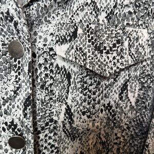 Fun and funky black and white snakeskin lightweight jacket that adds a little flare to a simple tank top or tee.