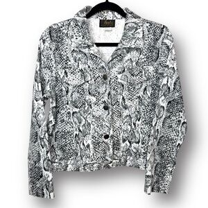 Vintage Y2K David Paul NY M Black White Snakeskin Cropped Button Down Jacket