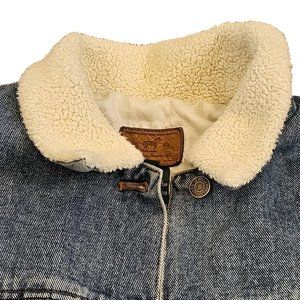 Vintage Y2K Denim Jacket L Trucker Coat Ralph Lauren Sherpa Collar Insulated