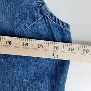 Vintage Y2K Denim Shirt Dress Sleeveless Med Blue Wash Jean Mini Dress Womens M