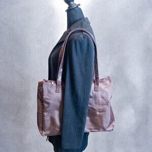Vintage Y2K Diane von Furstenberg Brown Nylon Faux Croc Trim Tote Bag