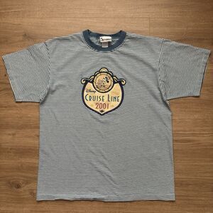 Vintage Y2K Disney Cruise Line 2001 Mickey T Shirt Stripe Size M Single Stitch