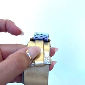 Channel early-2000s Dolce & Gabbana runway energy with this metallic gold logo belt — the ultimate Y2K statement accessory. The bold chrome buckle and glossy stingray texture evoke iconic clubwear style from D&G’s diffusion era. Pair it with low-rise jeans, a satin skirt, or a fitted corset top for that nostalgic nightlife look. Rare vintage find that embodies Italian luxury and archival Y2K fashion.