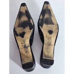 The Vintage Y2K Dollhouse Darby Patent Leather Pointed Toe Mules in size 9M are a timeless, classic, witchy, gothic, preppy and stylish addition to any woman's wardrobe. These slip-on mules feature a low kitten heel, making them suitable for various occasions from casual outings to formal events. The black patent leather upper and rubber outsole provide durability and a sleek finish, while the lightweight and breathable design ensures comfort all year round. With a touch of retro charm and a hint of nostalgia, these Y2K-inspired heels are perfect for adding a unique flair to any outfit. Sole is lifting on the left shoe. SEE PHOTOS!!!