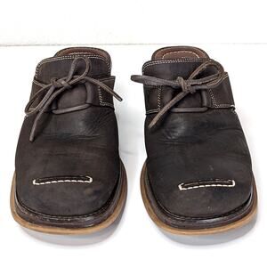 Vintage Y2K Donald J. Pliner Clogs Heels Square Toe Brown Suede Bow Preppy VTG 7