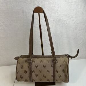Vintage Y2K Dooney & Bourke Barrel Bag Brown Signature Logo Print Zip Shoulder