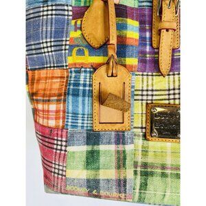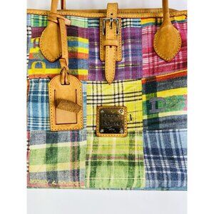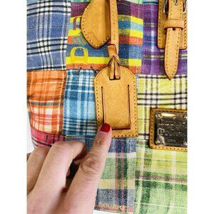 Vintage Y2K Dooney & Bourke Rainbow Madras Plaid Patchwork Tote Purse Handbag