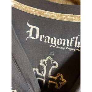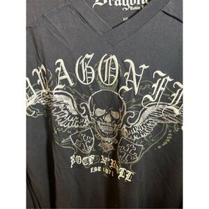 Vintage Y2K Dragonfly Thermal Embroidered Long Sleeve skull Fire v-neck