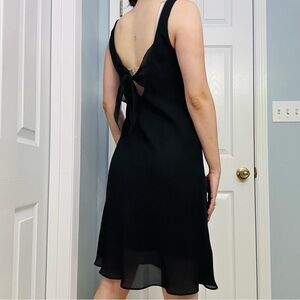 Style: Mini black tie back cowl neck dress. Cocktail, Y2K, vintage, minimalist styles. Little black dress.