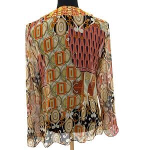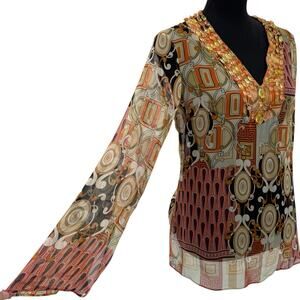 Vintage Y2K ECI New York Beaded V-Neck Sheer Boho Blouse Women Blouse Med
