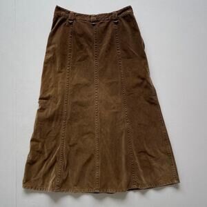 Vintage Y2K EDDIE BAUER Brown Velvet Corduroy Paneled A Line Maxi Skirt Grunge