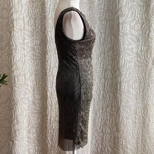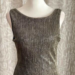 Vintage Y2K ESTAM Glam Silver Metallic Boat Neck Cocktail Bodycon NYE Dress Sz M