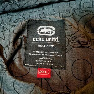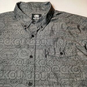 Vintage Y2K Ecko Unltd Shirt 2XL Gray All Over Print Logo Spellout Streetwear