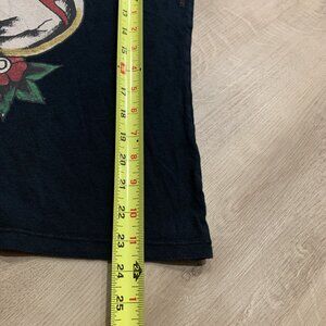 Vintage Y2K Ed Hardy By Christian Audigier Fitted Top T-Shirt Women's Large L Black USA Made Skull Butterfly Rose Tattoo Art 2000's Streetwear