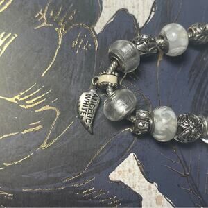 Vintage Y2K Elegant Silver and White Charm Bracelet Angel Wing D?