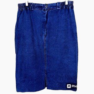 Vintage Y2K Embroidered Beaded Denim Midi Skirt M Boho Cottagecore Glam Retro