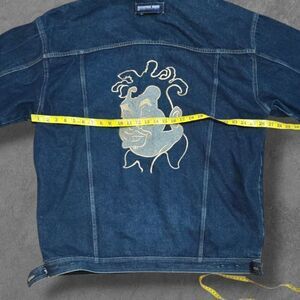Vintage Embroidered Fat Albert Jean Jacket by Culture Jeans. Please note, bottom button is missing as are the buttons for the adjustments on the bottom. Measurements pictured, tagged 3XL.
