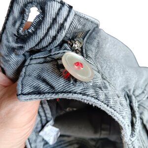 These vintage GYRURO jeans showcase a timeless appeal with their distressed gray denim finish. With a relaxed fit, these jeans capture the essence of vintage fashion, offering a blend of comfort and style. The unique design and classic color make them versatile for various outfits, adding a touch of retro charm.