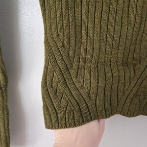 Stay cozy and stylish with this olive green ribbed turtleneck sweater. Perfect for layering or wearing on its own, this sweater offers both comfort and elegance.