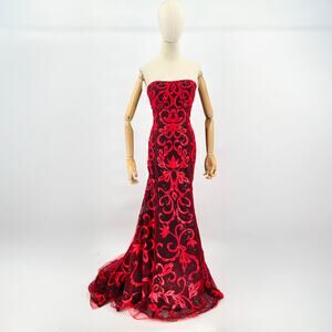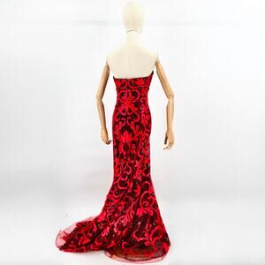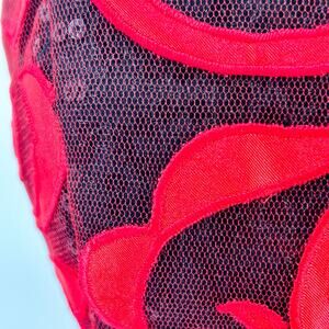 Vintage Y2K Envi Red Black Floral Applique Sequin Mermaid Gown