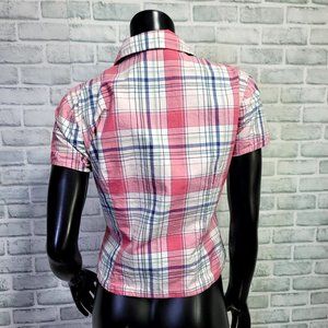 Vintage Y2K Esprit JRS M Pink Plaid Cotton S/S Button Front Shirt Preppy