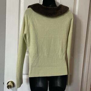 Vintage Y2K Evan Picone Sweater Women Medium Green Removable Faux Fur Collar Top