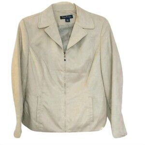 Vintage Y2K Evan-Picone Zip-Up Jacket Beige Neutral Size 12P Career Casual